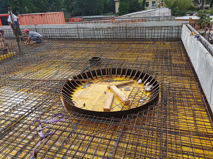 Abfangung hoher punktuelle Lasten aus Floatingbecken und Whirlpools über der Schwimmhalle