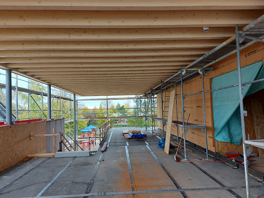 Kindergarten Erweiterung um 4 Gruppen inkl. Neben- und Personalräume.