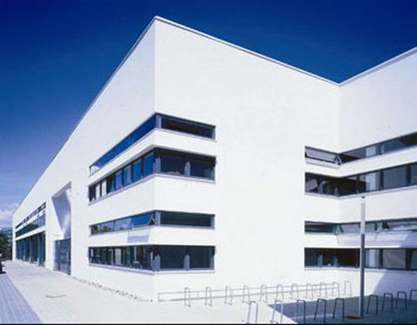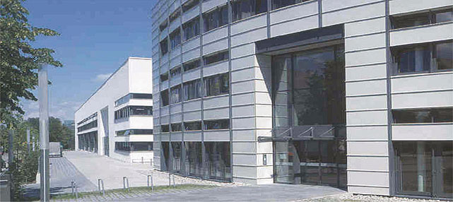 - Institutsneubau mit fünf Baukörpern, die an die durchgehende ca. 100 m lange Erschließungsmagistrale angegliedert sind. Drei Baukörper auf der Ostseite nehmen jeweils die Labors und die zugehörigen Funktionsräume für die Entwicklungs- und Forschungstätigkeiten auf. Der Kopfbau auf der Südseite dient als Empfangs- und Verwaltungsgebäude.