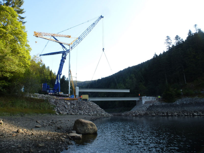 - Einfeldbrücke bestehend aus 5 Fertigteilen mit Ortbetonergänzung