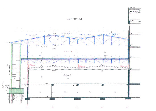 Ebene E0+E10 in Stahlbetonweise darüber liegende Ebenen als Stahlkonstruktion, Technikebene mit Fachwerkbindern,