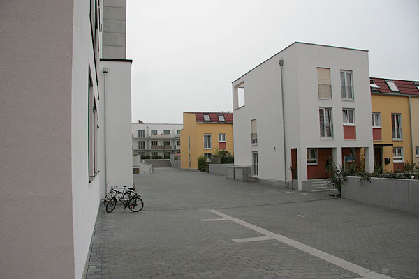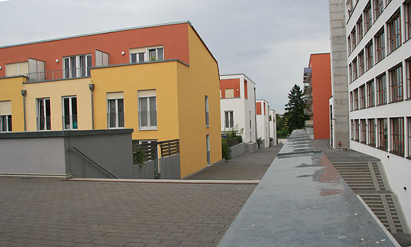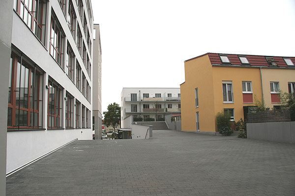 Mischbebauung mit Einzelhandel, Reihenhäusern, Geschosswohnungsbau und ein- / zweigeschossiger Tiefgarage.
