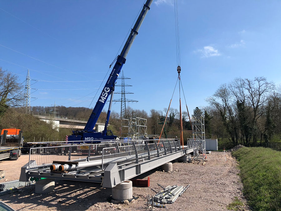 Geh- und Radwegbrücke über die Schlücht im Zuge einer Radwegverbindung zwischen den Stadtteilen Waldshut und Tiengen