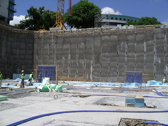 Das Gebäude besteht aus 4 Untergeschossen sowie 2 aufgehenden Geschossen mit 5 bzw. 10 Geschossen