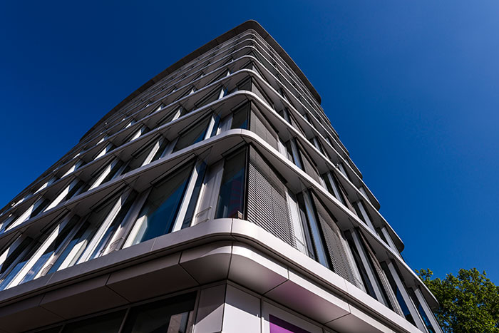 Bei der Konstruktion handelt es sich um ein Gebäude aus Stahlbeton, wobei die Geschossdecken mit integrierten Rohrleitungen zum Heizen und Kühlen aktiviert werden. Zusätzlich wurden in die Massivdecke auch Lüftungskanäle