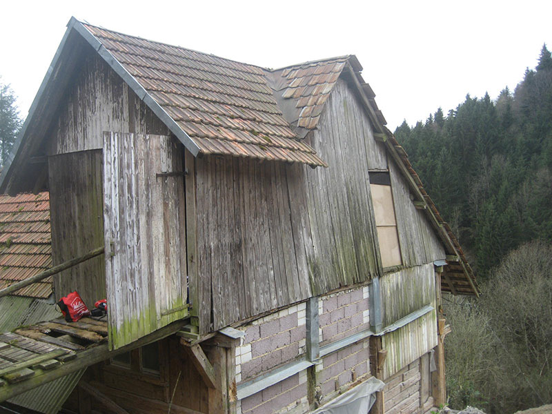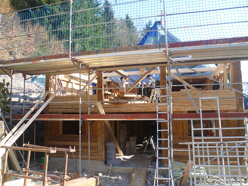 Wiederaufbau des eingestürzten Ökonomieteil des denkmalgeschützten Wohn- und Ökonomiegebäudes, Einbau einer zweiten Wohnung.